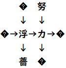 浮薔:ふしょう。みずあおい。水の中から生えて、青紫の花が咲く。