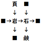 頁岩:けつがん。泥が堆積してできる、岩石の一種。本のページのように薄く割れる。