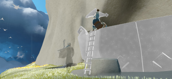 風の街道には、記憶を追体験する途中で、はしごが現れる精霊が二人います
